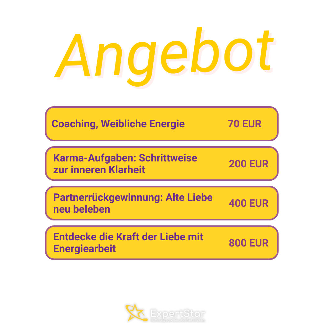 Mit meiner vertrauensvollen Glaskugel, den kraftvollen Karten und der Weisheit des Universums erreichst du leichter deine Ziele. Ich begleite dich mit echter Klarheit, tiefem Gespür und ehrlichen Worten, die dich stärken, um deine Herausforderungen in Liebe, Beruf und Leben zu meistern.Es ist mir ein Herzensanliegen, das wir gemeinsam deine neuen Potenziale entdecken. Es gibt keine doofen Fragen – nur verpasste Chancen. Lass uns jetzt starten – für dich, dein Leben, deine Zukunft.Deine Elena